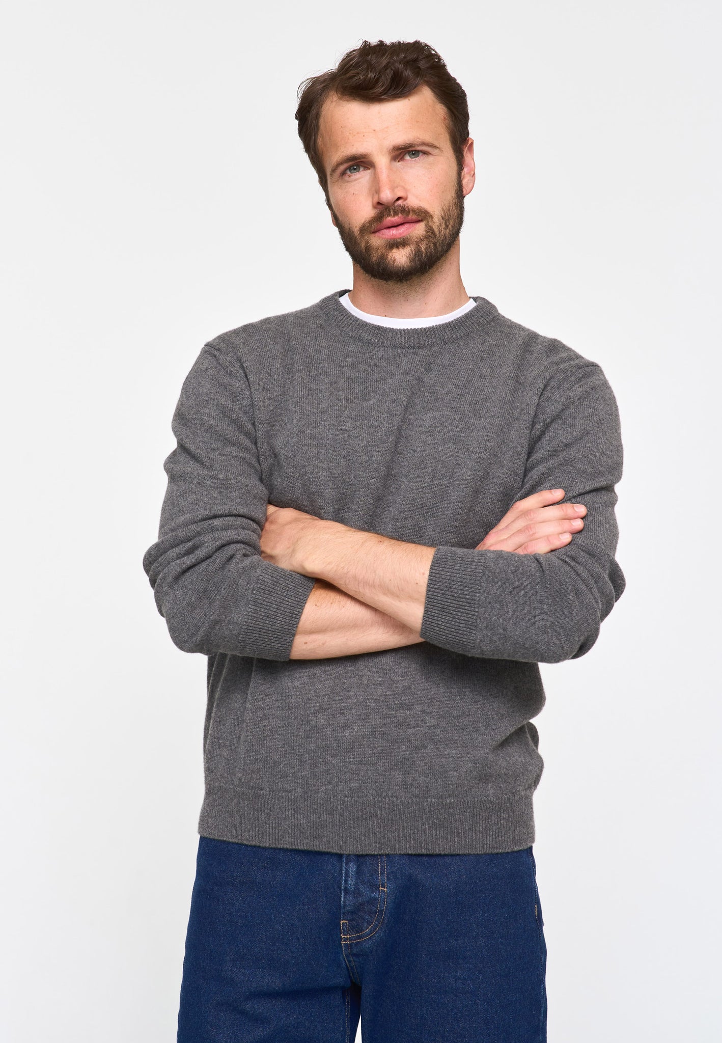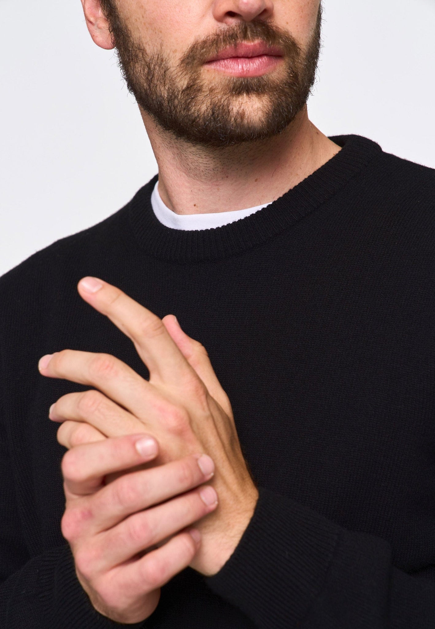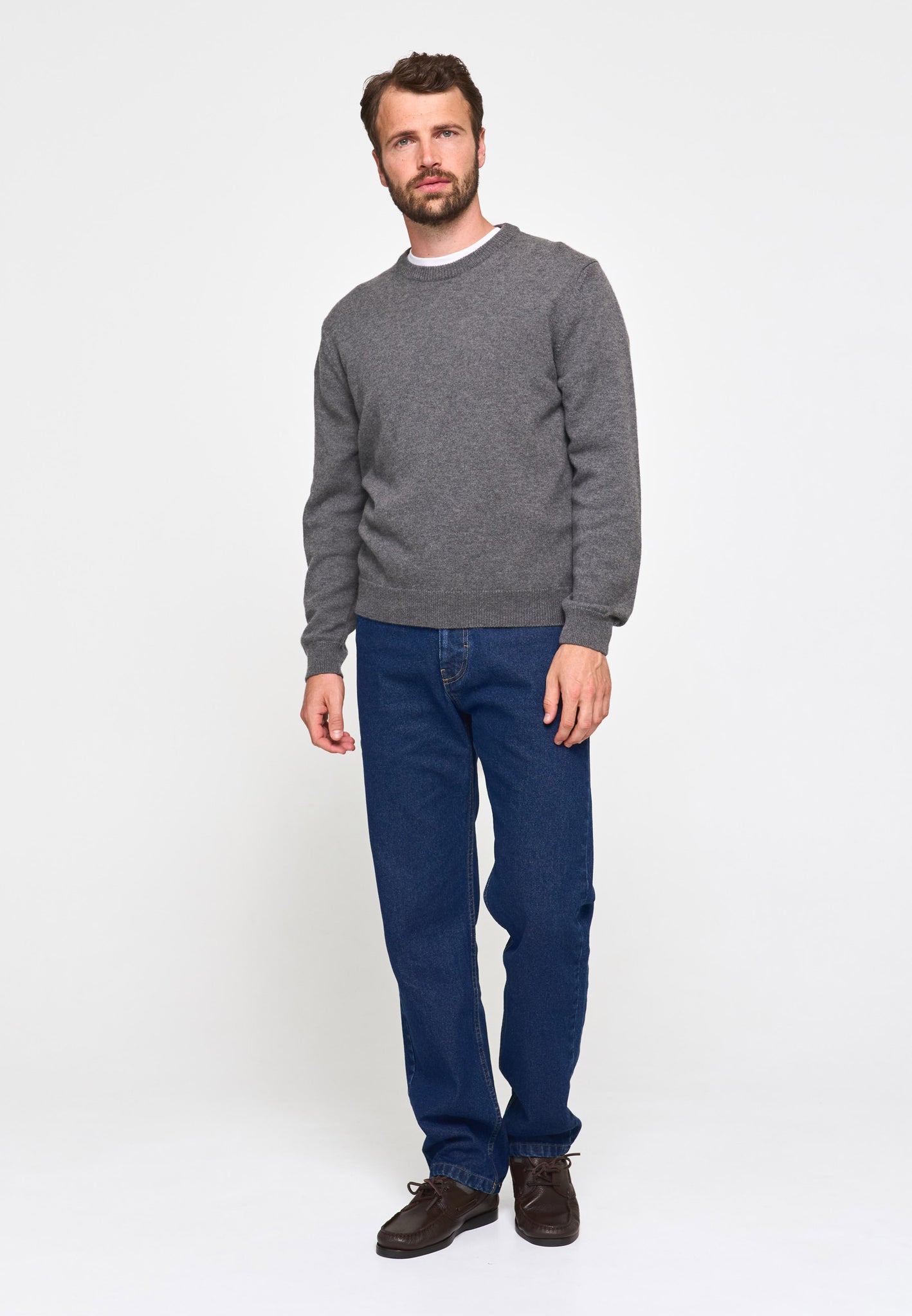 Knitted round neck sweater in a mid-weight RWS merino wool. Relaxed fit with waist-length cut.