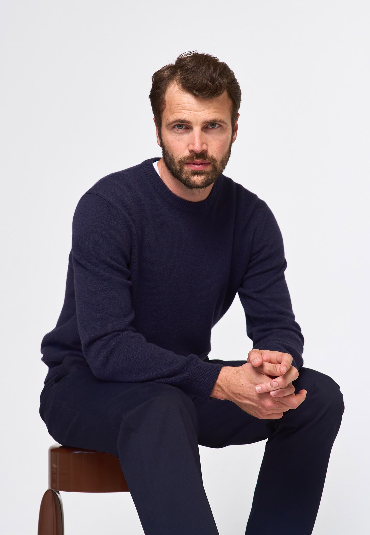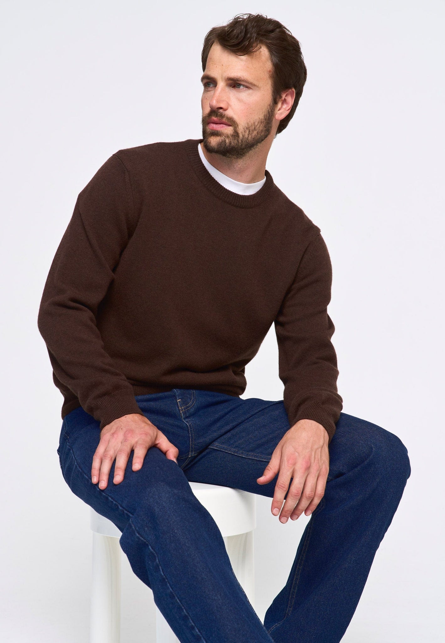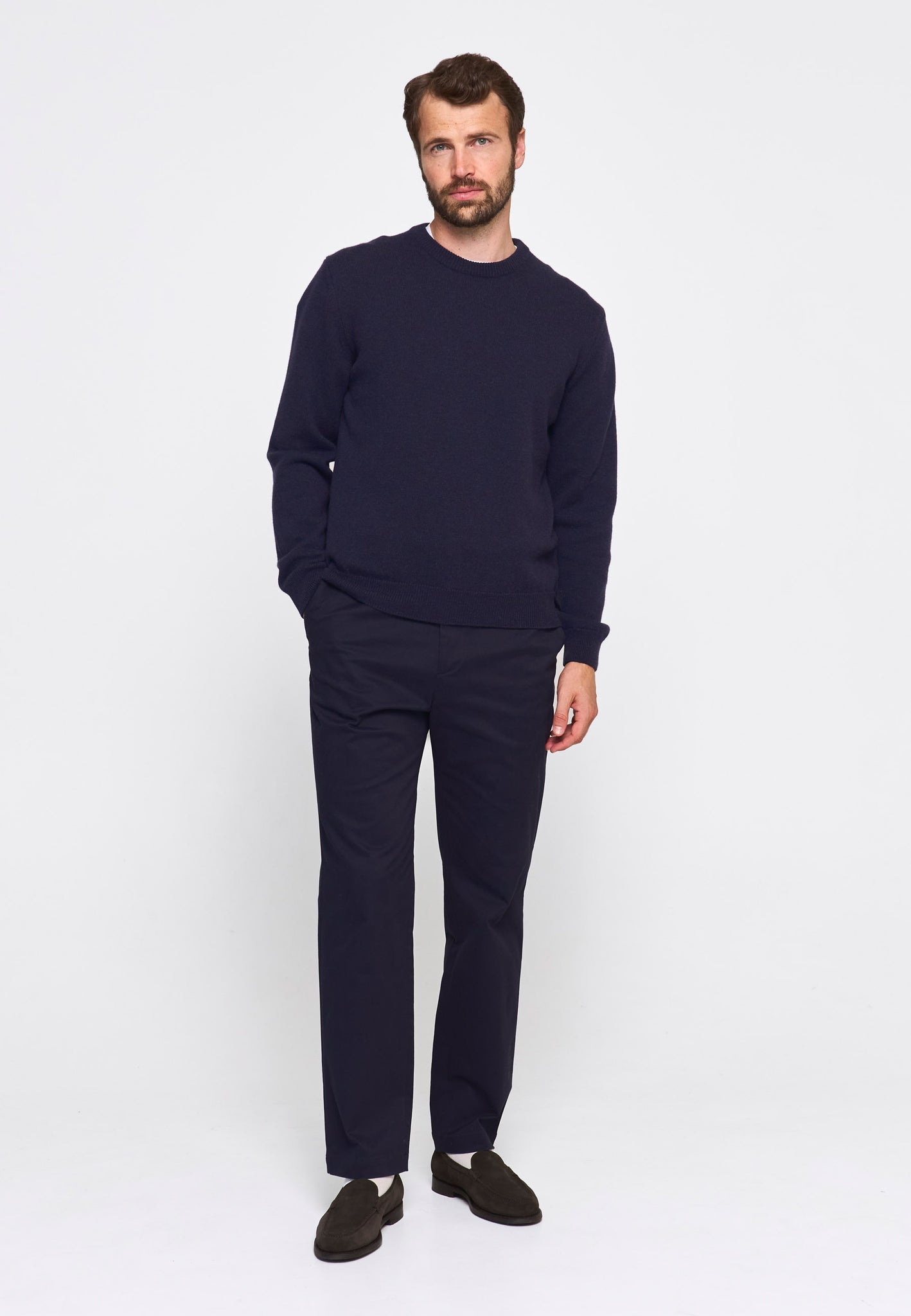 Knitted round neck sweater in a mid-weight RWS merino wool. Relaxed fit with waist-length cut.