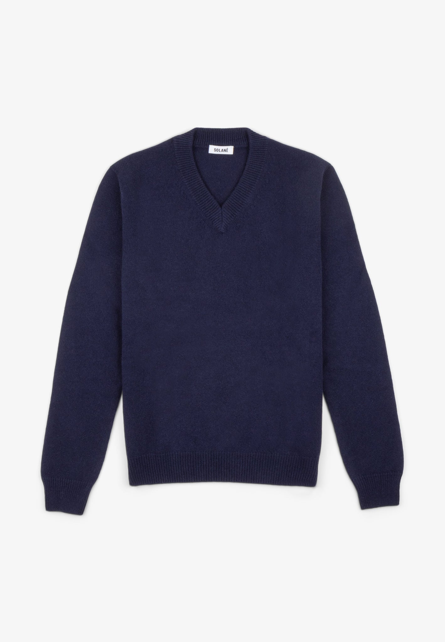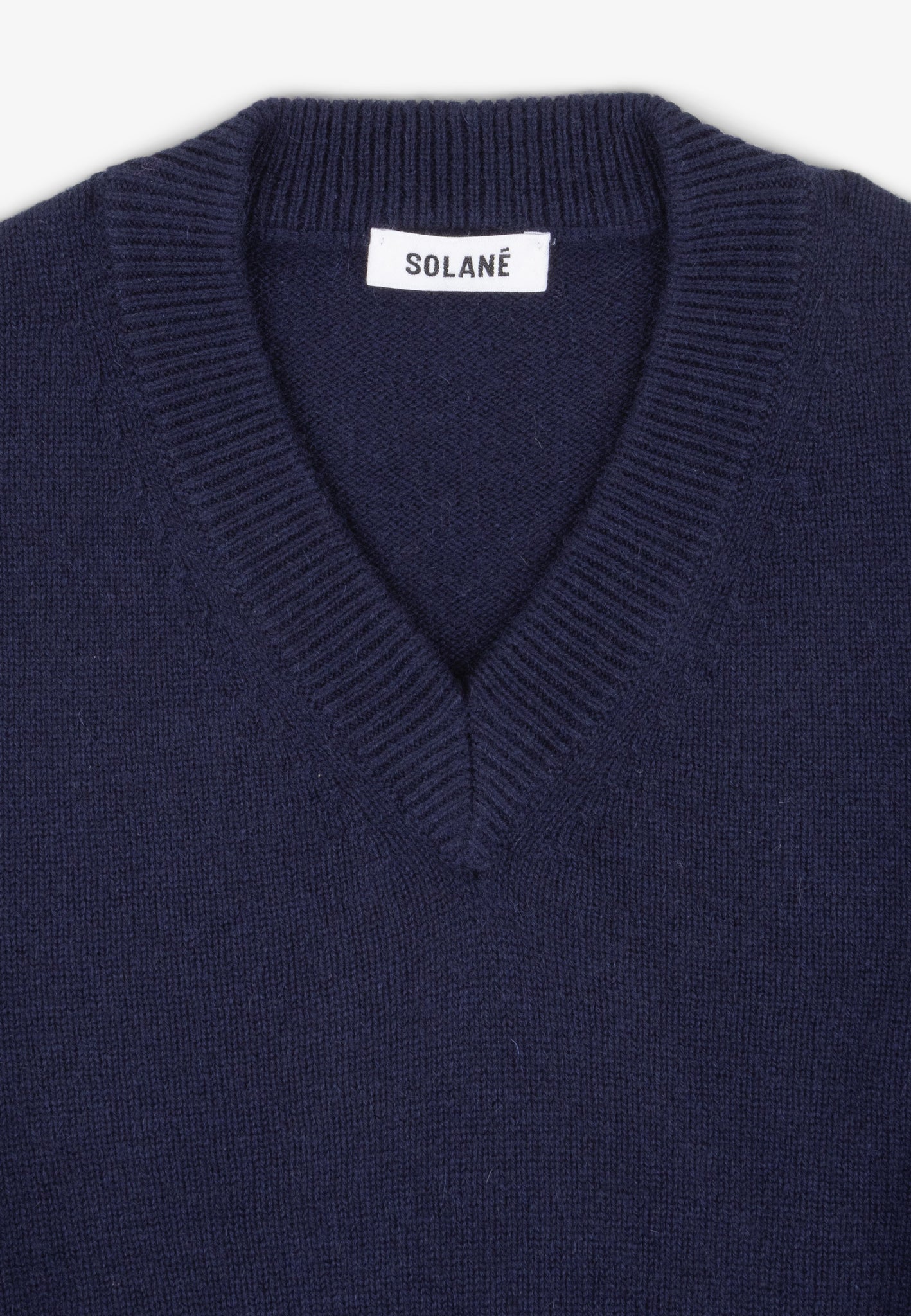 Knitted round neck sweater in fair trade cashmere. Relaxed fit.
