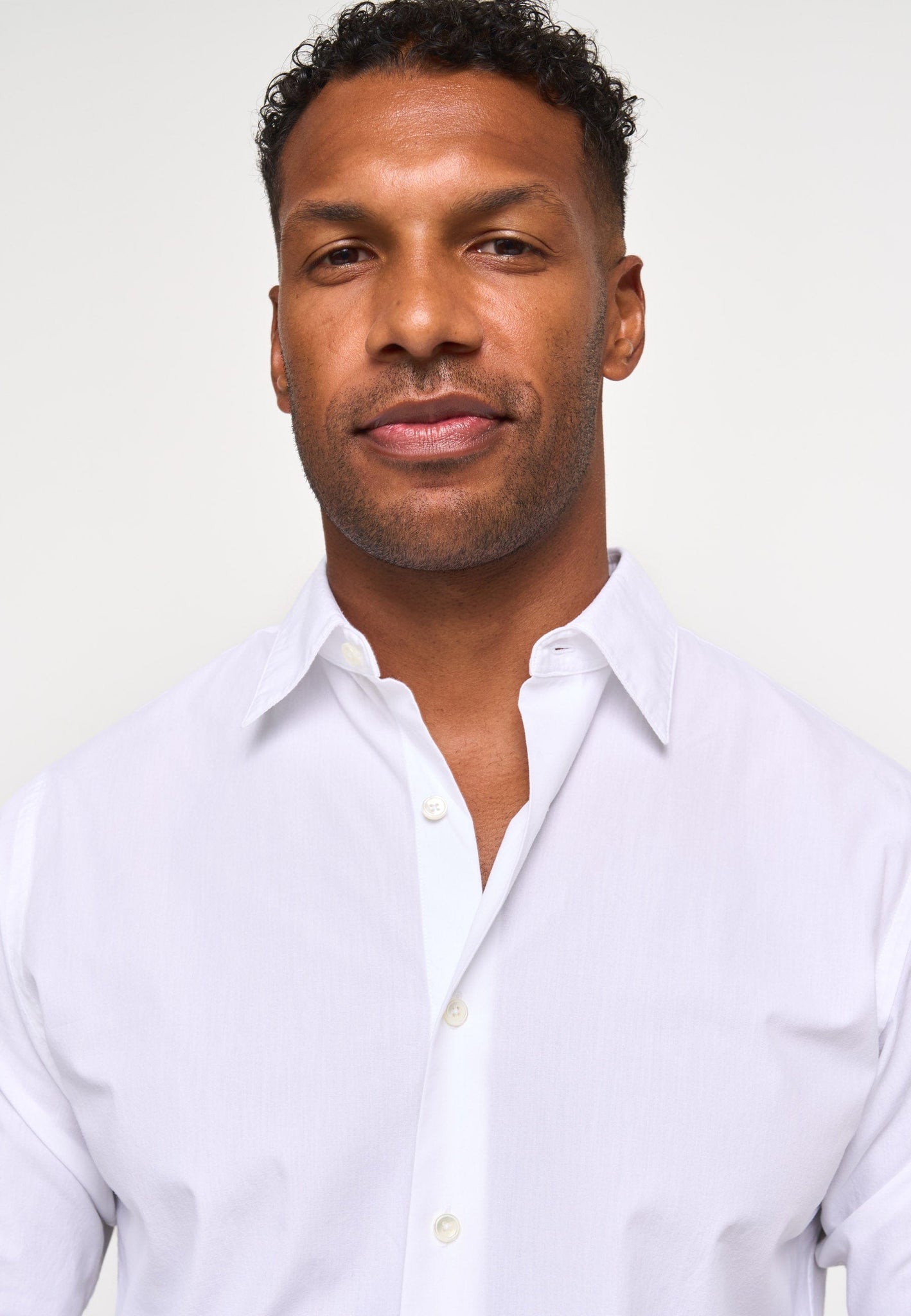 Long-sleeve organic cotton popelin shirt. Classic kent collar with a relaxed fit.