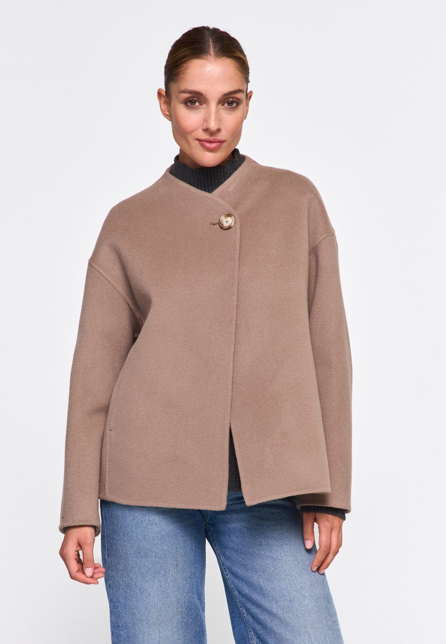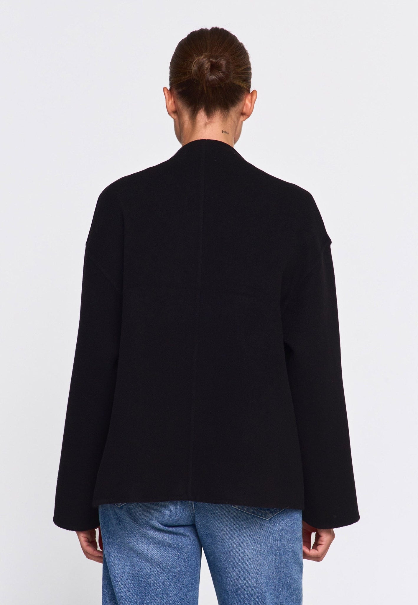 Short wool jacket with button closure in the collar. Relaxed fit.