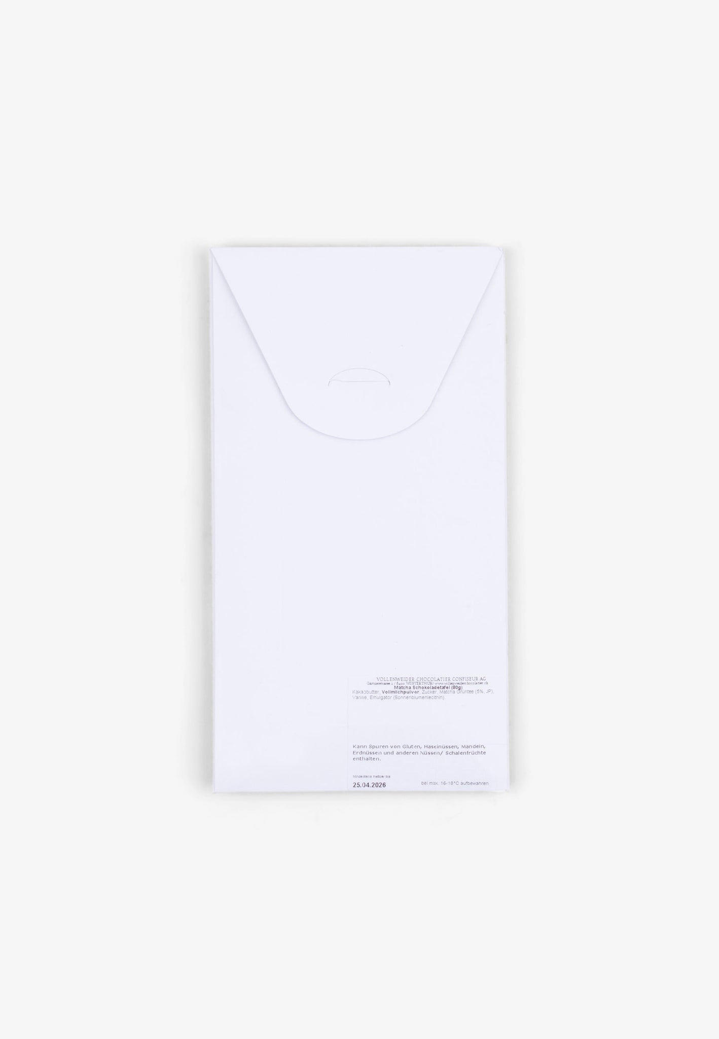 Ingredients: Cocoa butter, whole milk powder, sugar, matcha green tea(5% JP), vanilla, emulsifier (sunflower lecithin) May contain traces of gluten, hazelnuts, almonds, peanuts and other nuts/tree fruits Made in: Switzerland