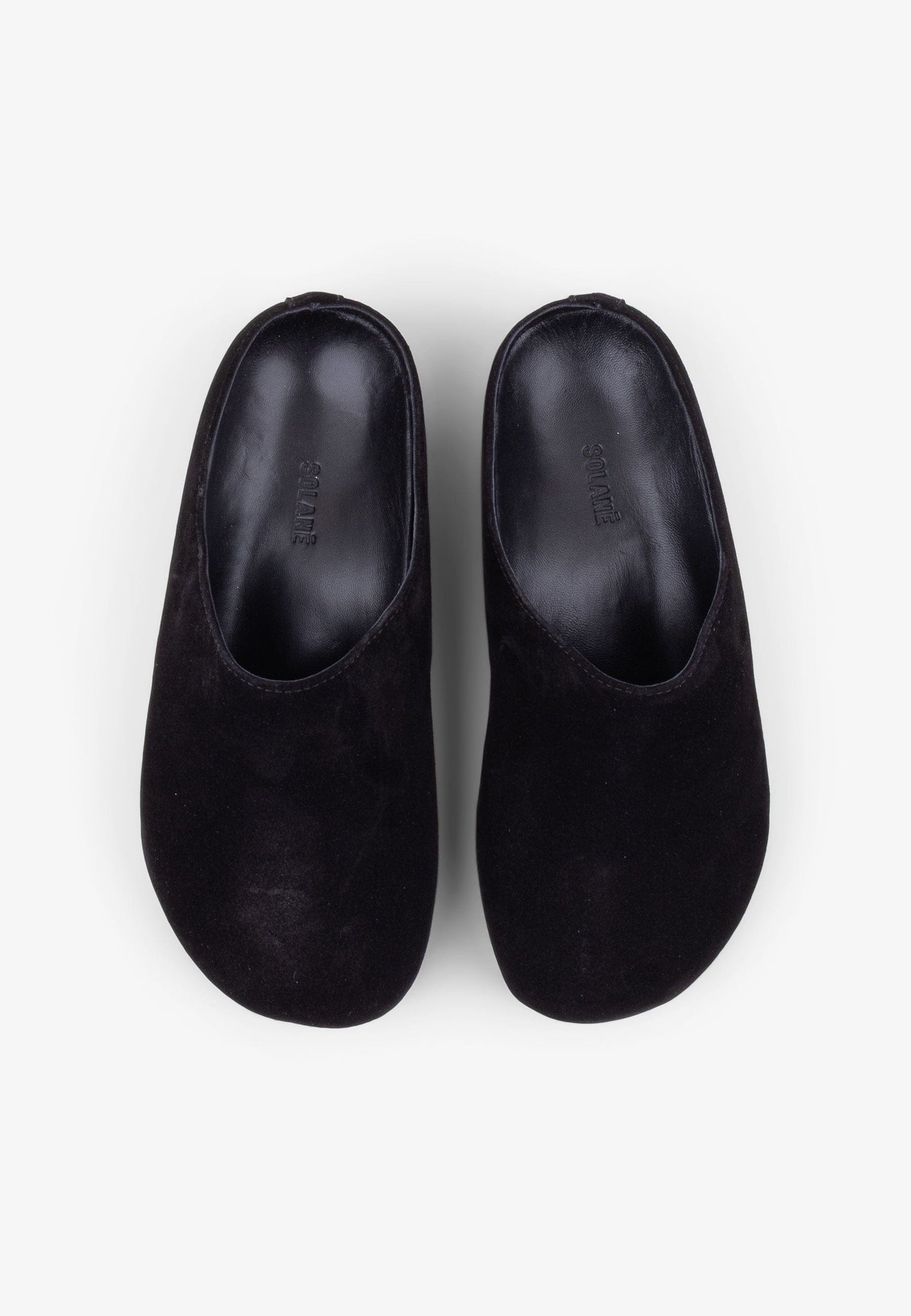 Suede Clogs with rubber sole and cork insole covered in matching suede leather